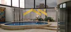 Piscina aquecida e lavabo.