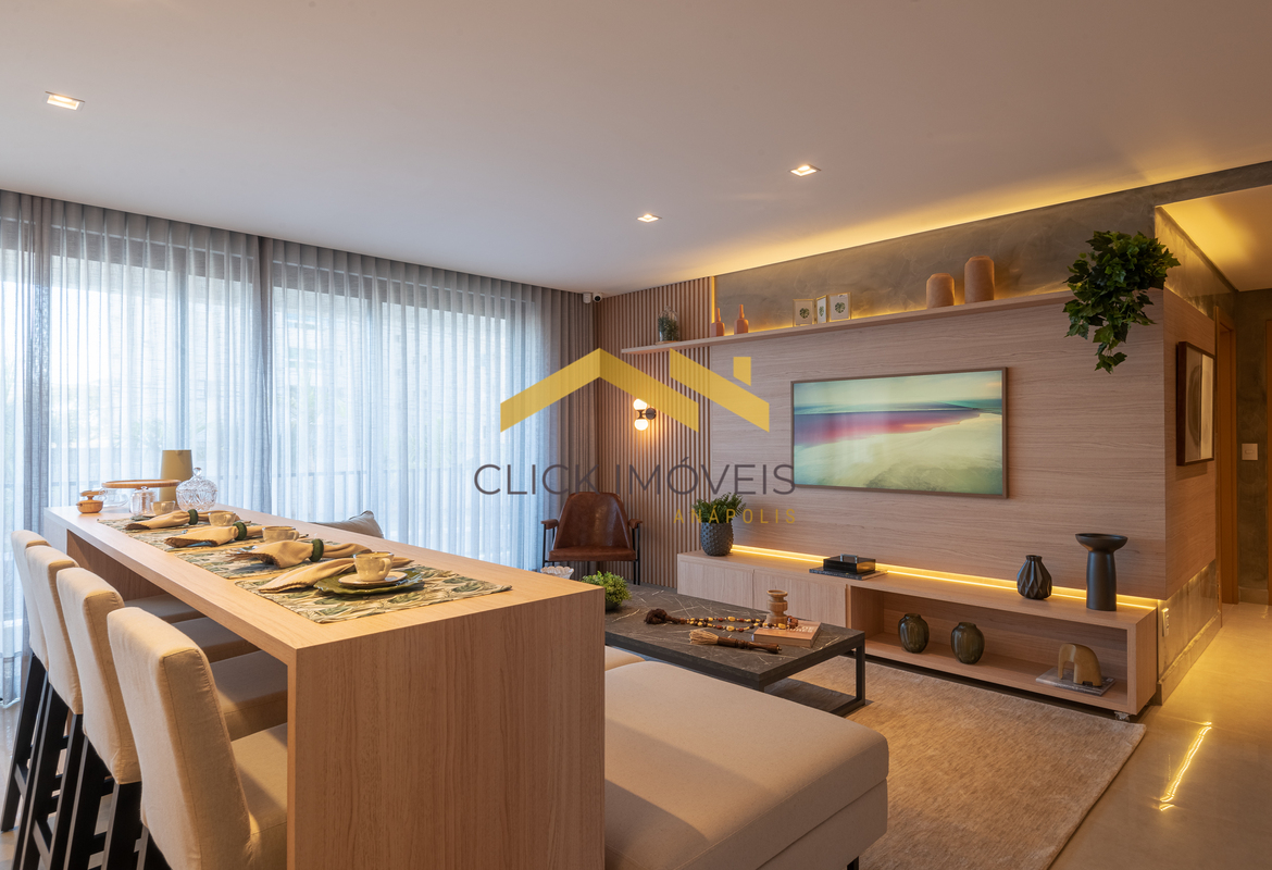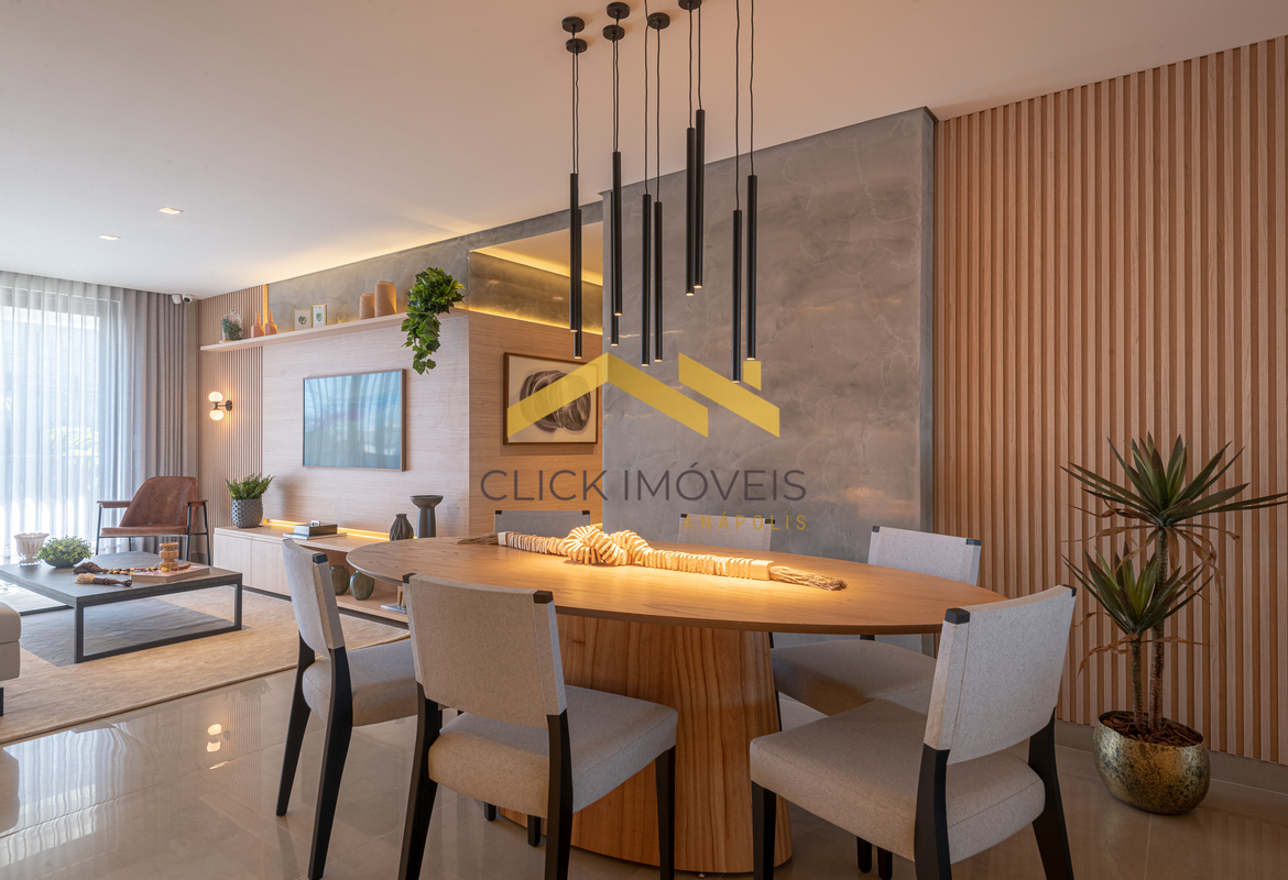Sala de jantar, sala de tv com sacada e lavabo.